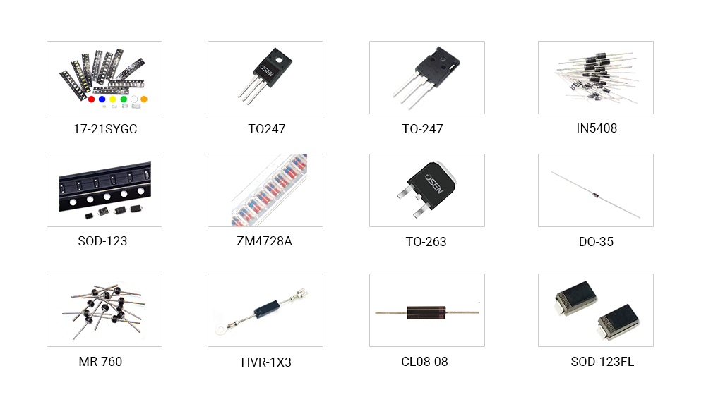 Ассортимент диодов включает в себя стандартные выпрямители, высокоскоростные коммутационные и стабилитроны. Диоды проходят строгие испытания на производительность и надежность, предлагая эффективные решения. Включая выпрямительные диоды, диоды Шоттки, стабилитроны, светодиоды, варакторные диоды, диоды регуляторов напряжения, фотодиоды, PIN-диоды.