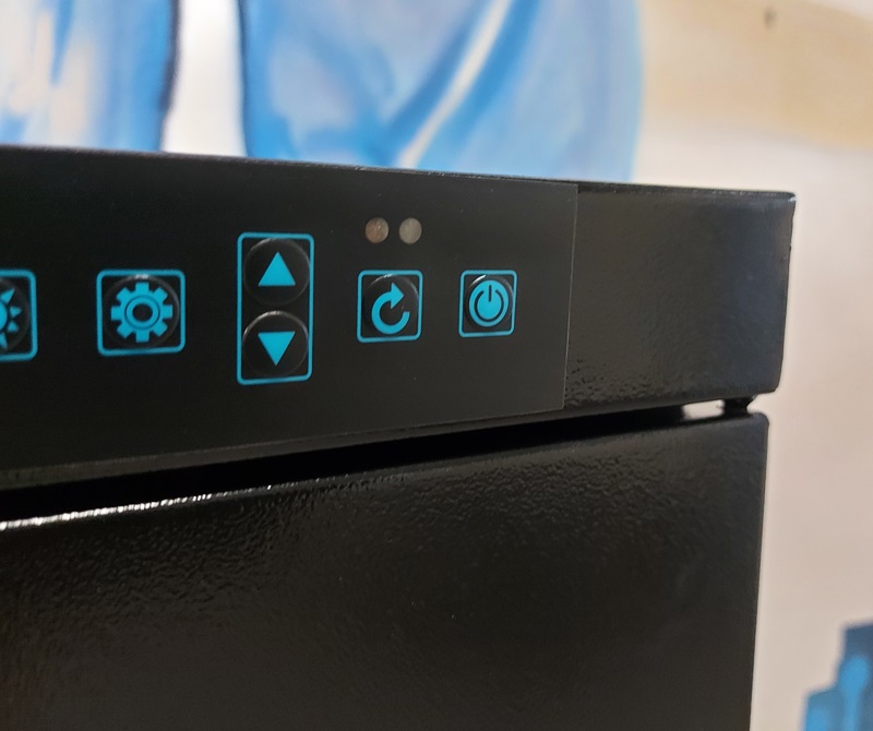 Шкаф имеет автоматическую систему регулирования температуры и влажности. Стоит особо отметить светодиодное освещение внутри шкафа, обеспечивающее равномерное освещение. Также шкаф сухого хранения имеет прозрачную дверь с замком для защиты от несанкционированного доступа. Замок имеет модульную конструкцию и позволяет при повороте использовать в качестве ручки. Сбоку шкафа сухого хранения предусмотрен коннектор для подсоединения кабеля для заземления.