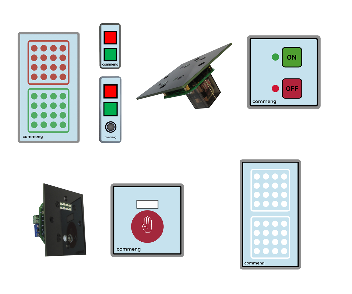 - Сигнальные панели и кнопки управления для дверей шлюзов и передаточных окон;