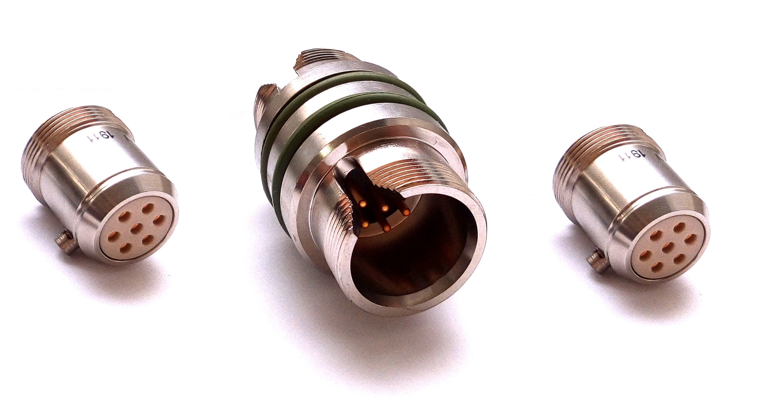 Разъемы предназначены для работы в электрических цепях постоянного, переменного (частотой до 3МГц) и импульсного токов. Технические характеристики: максимальное давление 120 МПа, сопротивление изоляции 5 000 МОм;суммарный ток 30А, 38А; рабочее напряжение-380В; материал корпуса-нержавеющая сталь; покрытие контактов- хим. никель, золото.