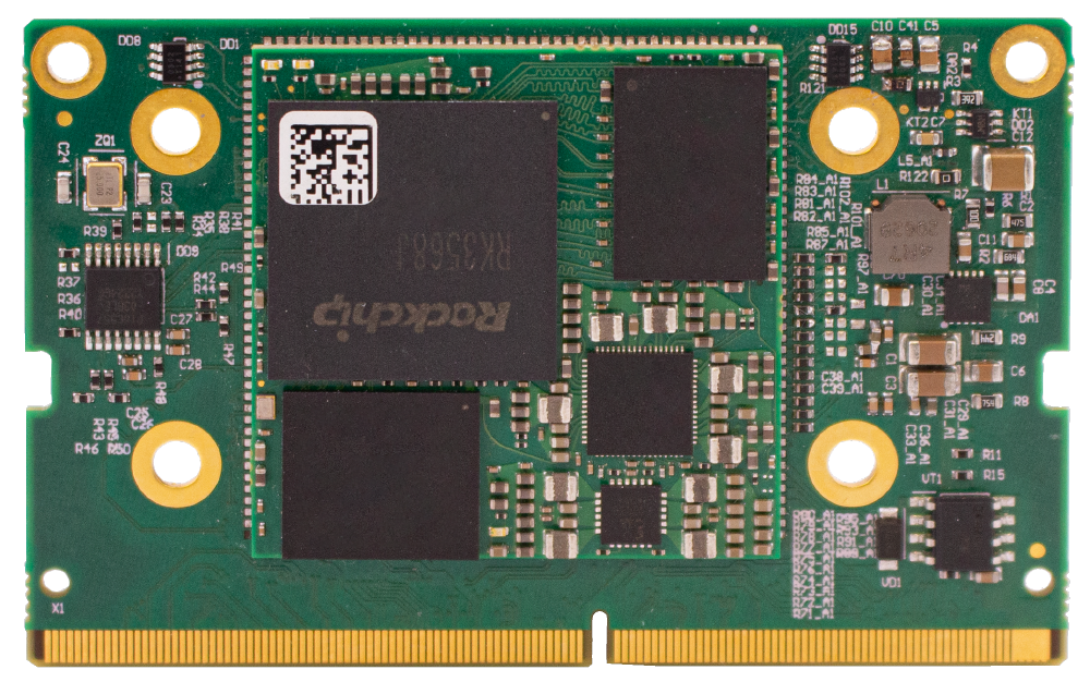 Мини SOM на основе производительного процессора Rockchip RK3568 с 4 ядрами ARM Cortex-A55. Компактные габариты 35х35 мм. Выполнен для SMD монтажа на базовую плату.