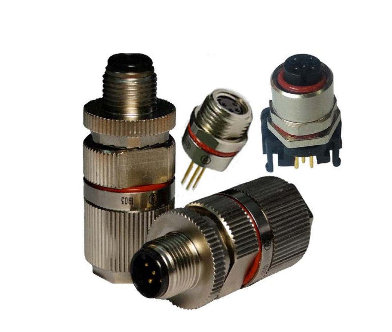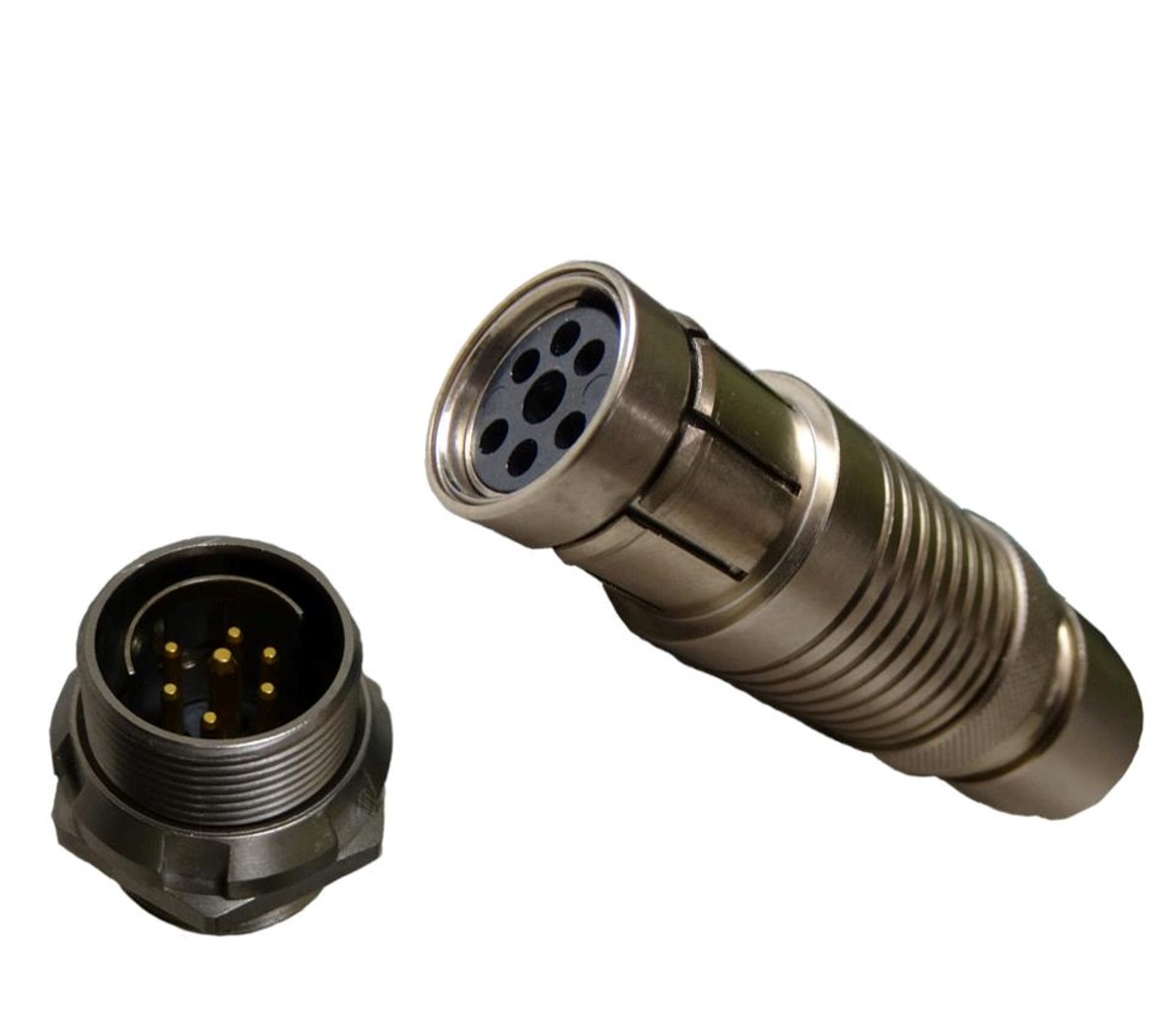 Соединители электрические цилиндрические для объемного (розетка) и печатного (вилка) монтажа резьбового сочленения, предназначены для работы в электрических цепях постоянного,