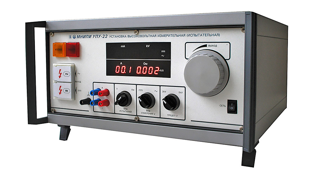 выходное напряжение постоянного и переменного тока УПУ-21, УПУ-21/2: 0 – 3; 0 – 10 кВ, УПУ-22: 0 – 2; 0 – 5 кВ;