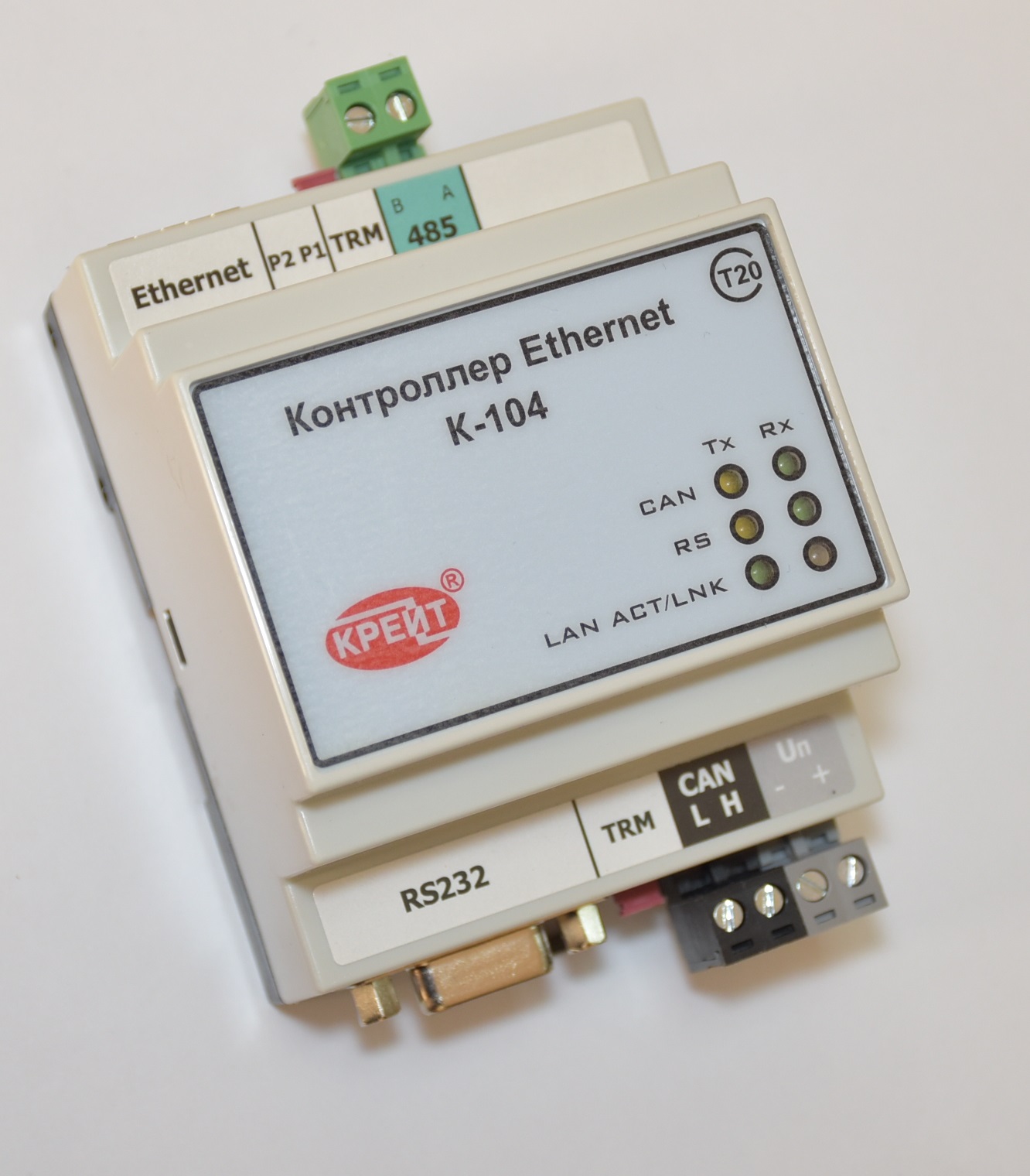 Контроллер Ethernet К-104 предназначен для подключения одного или нескольких приборов серии Т-20, объединенных магистралью CAN-BUS, и других приборов, имеющих интерфейсы RS-232, RS-485, в локальную вычислительную сеть в составе измерительных систем коммерческого учета и управления техпроцессами.