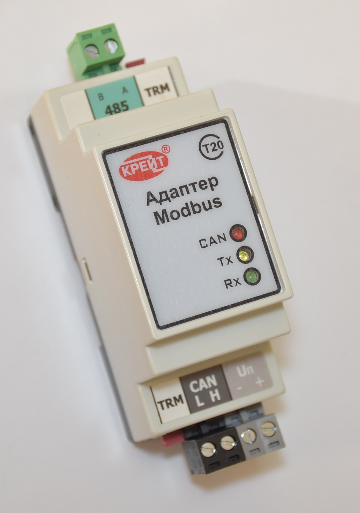 Адаптер предназначен для подключения устройств с поддержкой протокола MODBUS RTU по выделенной двухпроводной линии связи в стандарте RS-485 к системе контроллеров Т-20, объединенных магистралью обмена информацией CAN-BUS, в составе измерительных систем коммерческого учета и управления техпроцессами.