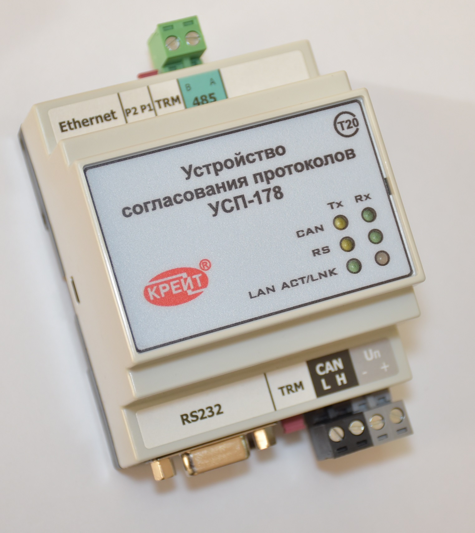 Устройство согласования протоколов УСП-178 предназначено для работы в составе контролируемых пунктов (КП) различных систем телемеханики, в состав которых входят приборы серии ТЭКОН-20, объединенные скоростной магистралью обмена информации CAN-BUS.
