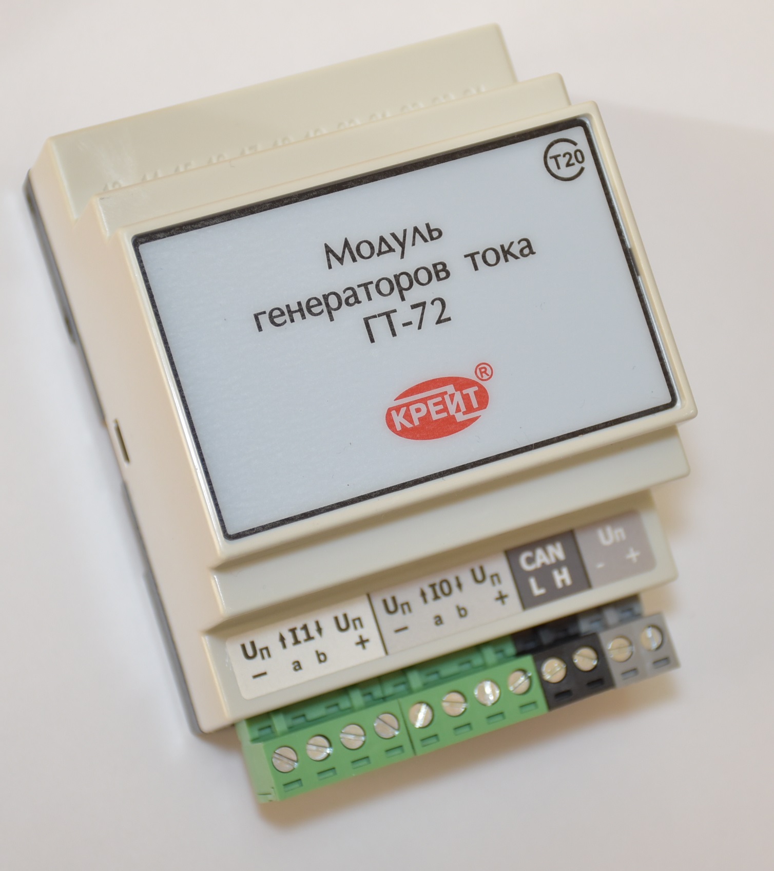 Модуль генераторов тока ГТ-72-02 - предназначен для работы в системах автоматического регулирования и управления. Контроллер осуществляет формирование двух независимых друг от друга, изолированных токовых сигналов ГТ0 и ГТ1 в соответствии с заданными входными параметрами и внутренними уставками.