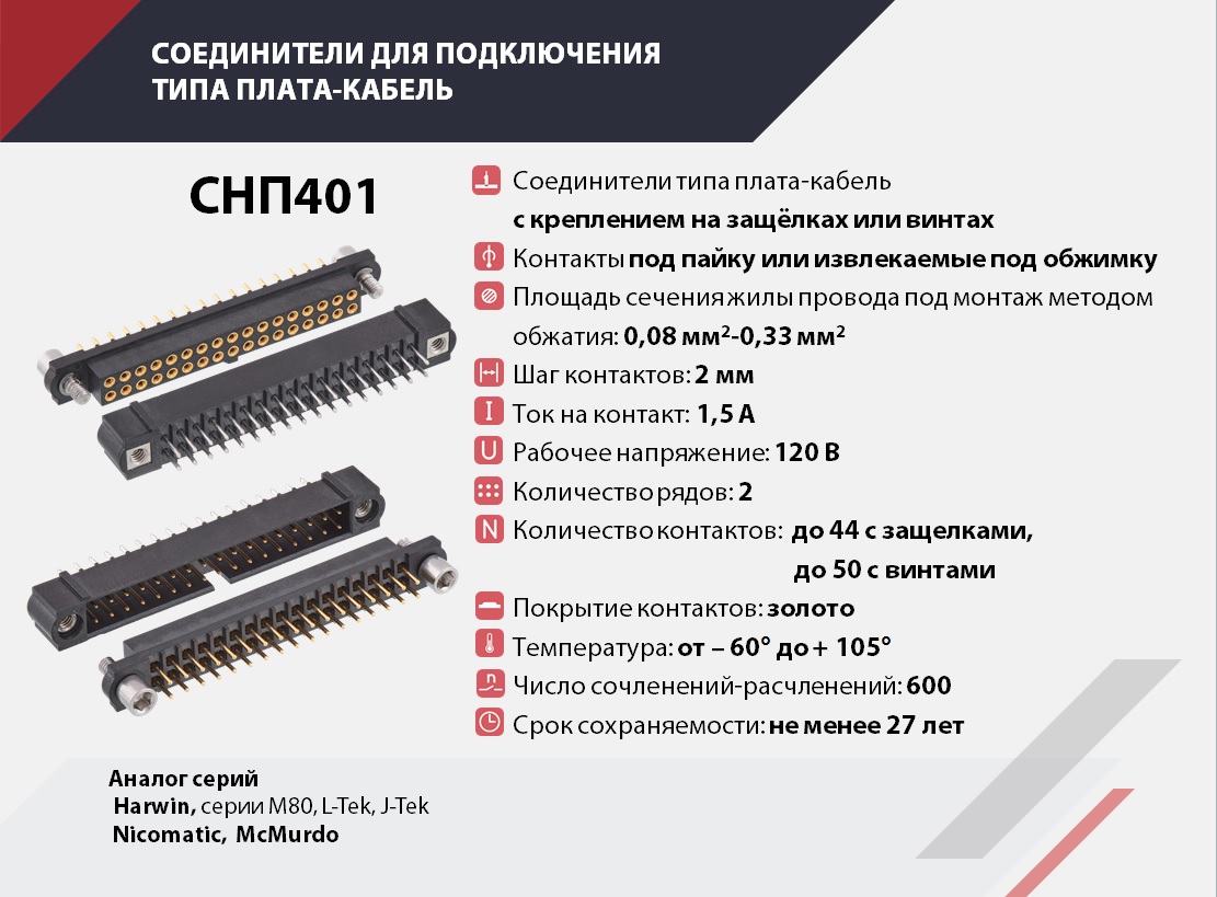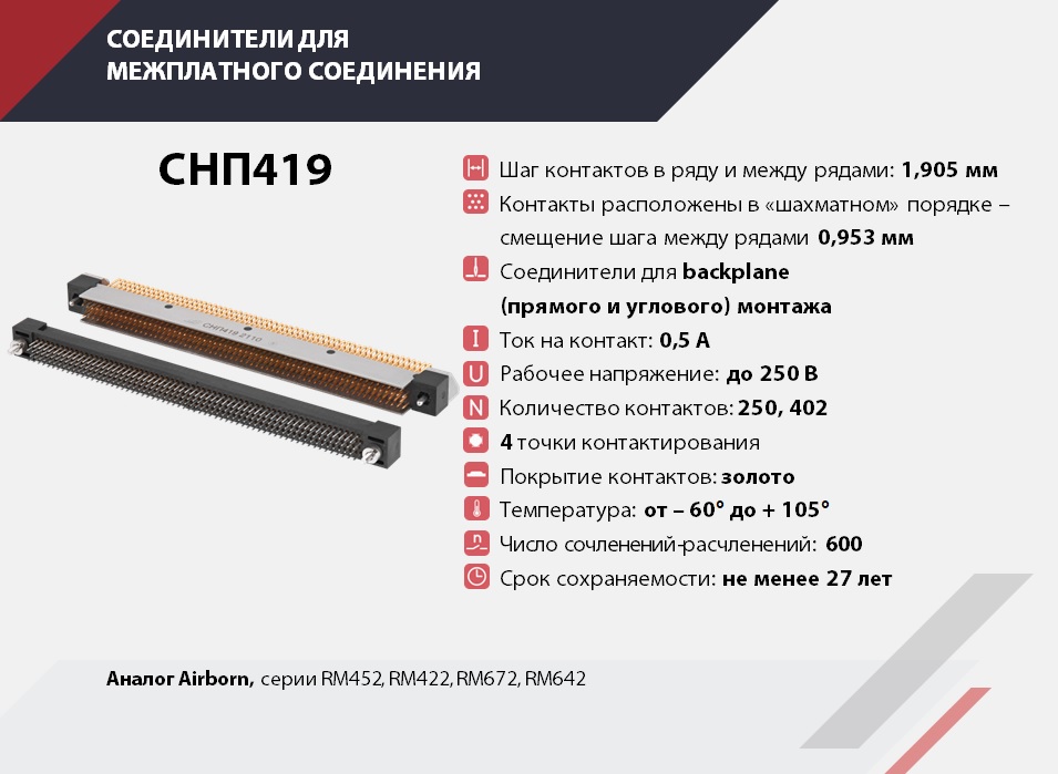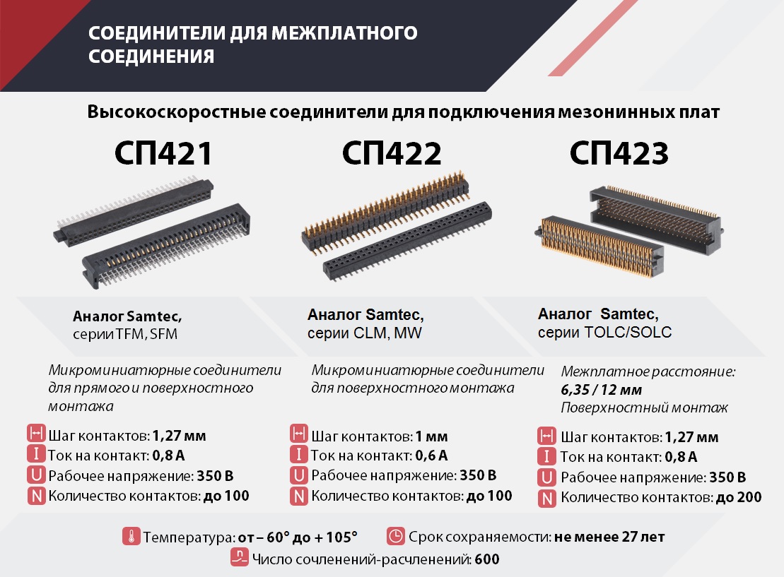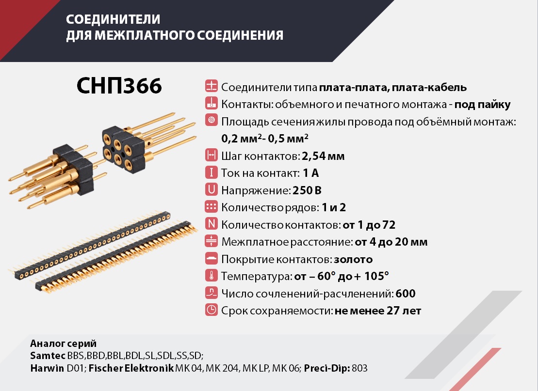 Прямоугольные соединители печатного и объемного монтажа для соединения печатных плат повышенной эксплуатационной надежности для использования в информационных цепях управления и электропитания РЭА.