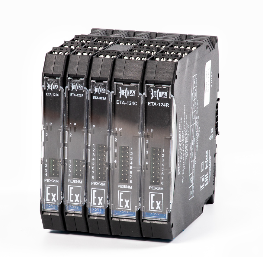 Активные барьеры искрозащиты серии ETA с искробезопасной цепью уровня "ia" по ГОСТ 31610.11, устанавливаемые вне взрывоопасной зоны, предназначены для преобразования и гальванического разделения дискретных и аналоговых сигналов