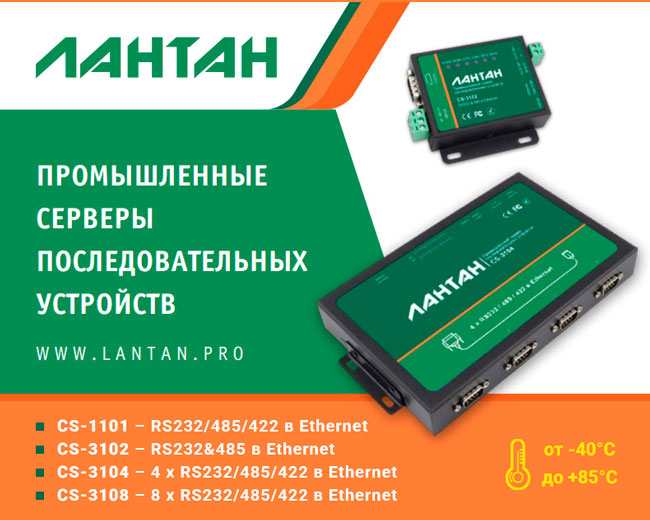Промышленные коммуникационные серверы ЛАНТАН предназначены для преобразования последовательных интерфейсов RS-232/422/485 в Ethernet TCP/IP, а также протоколов Modbus RTU в Modbus TCP, обеспечивая «прозрачную» двунаправленную передачу данных последовательных устройств по сетям Ethernet.