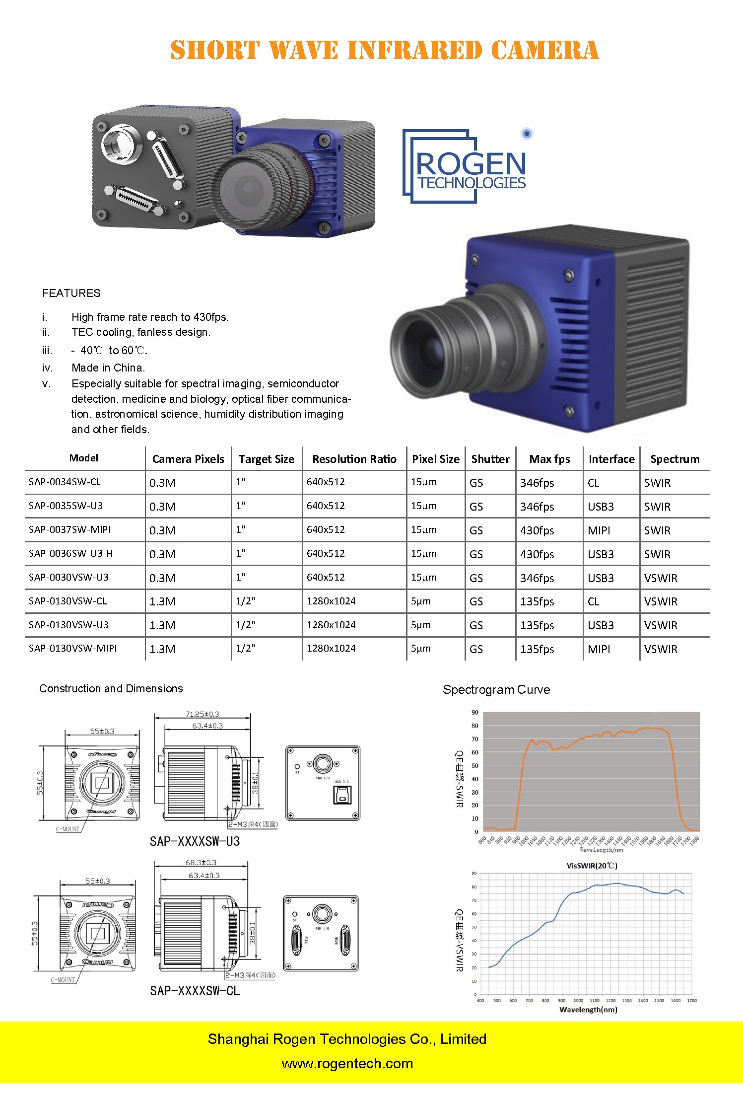 Компактная промышленная и передовая серия научных SWIR-камер с сенсорной технологией InGaAs от 900 до 1 700 нм. Особенно подходит для спектральной визуализации, обнаружения полупроводников, медицины и биологии, оптоволоконной связи, визуализации распределения влажности и других областей. www.rogentech.com