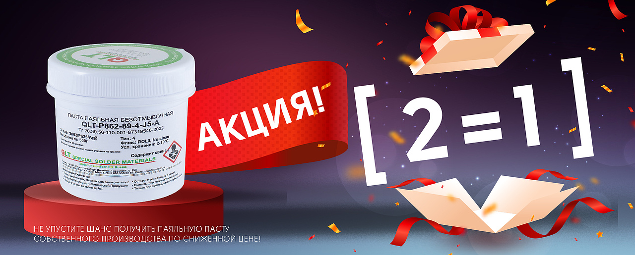 Мы рады предложить вам эксклюзивную акцию на паяльную пасту собственного производства! Только сейчас при покупке 1 банки вы получаете вторую в подарок!
